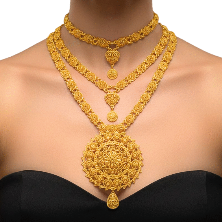 Majestic Heritage Layered Gold Necklace Set by Tarasha Jewels