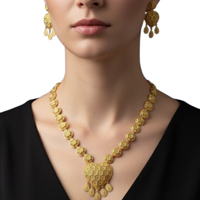 Elegant Heart Motif Gold Necklace Set by Tarasha Jewels